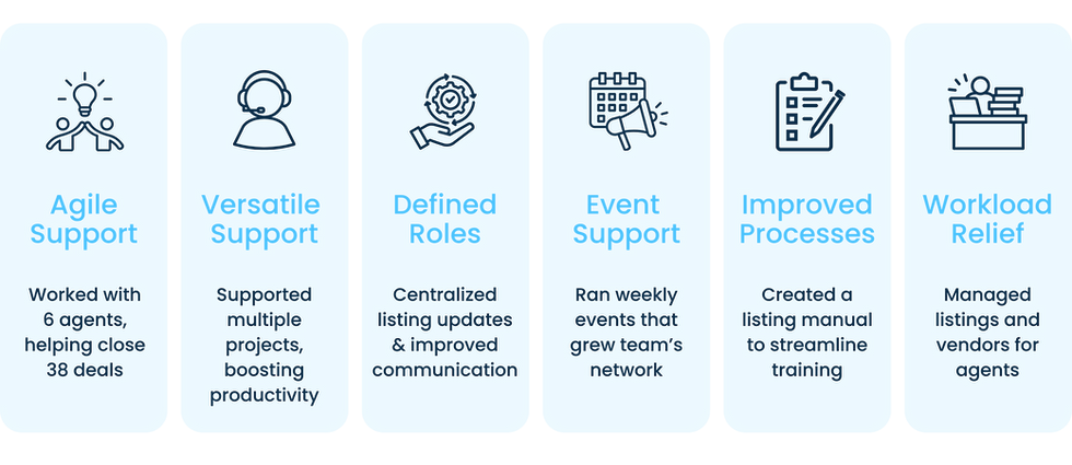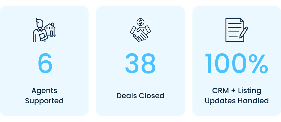 With Rob’s support, the real estate team experienced immediate and sustained improvements across operations, collaboration, and productivity. In just 5 months, agents closed 38 deals with Rob's support.